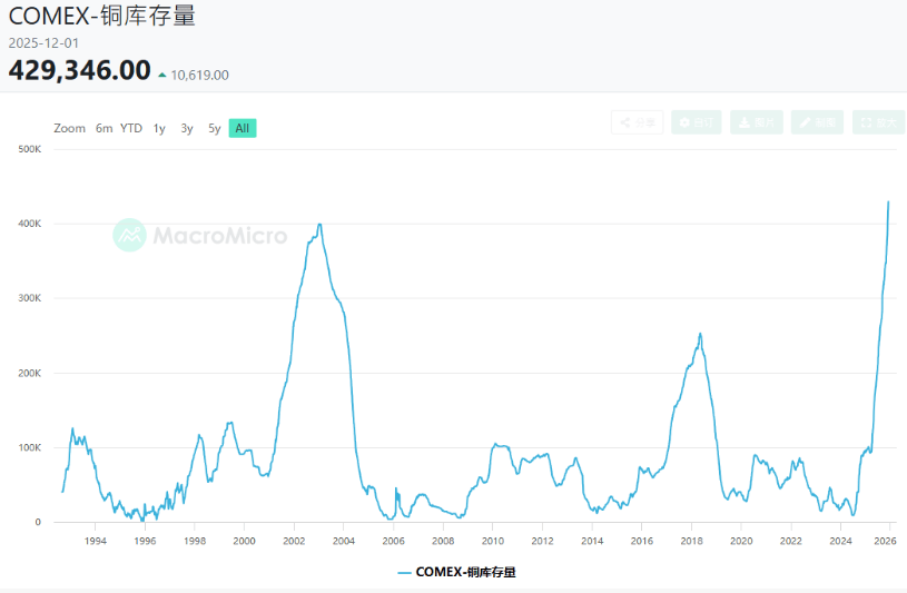 铜价创历史新高及市场动态 - 2025年12月3日,伦敦金属交易所(LME)铜价刷新历史新高,其提货订单出现自2013年以来最大单日增幅 [1] - 同期,上海期货交易所(SHFE)沪铜期货主力合约站上9万元/吨大关,亦创历史新高 [1] - 纽约商品交易所(COMEX)铜价从2025年初的每磅4.06美元上涨至创纪录的每磅5.4美元,涨幅超过30% [1] 全球铜库存结构性转移与溢价 - COMEX铜库存已暴涨至约39.4万吨(43.4万短吨),而LME铜库存从2024年的32万吨腰斩至16万吨,SHFE铜库存更是跌破10万吨 [2] - COMEX市场正以每吨超过400美元的溢价,从伦敦和上海吸纳库存,导致其出现“超级溢价” [1] - 2025年12月2日,COMEX单日有5,389吨现货铜入库,同时有25,190吨铜从“不可交割”状态转为“可交割”状态,为大规模交割做准备 [4] - 2025年11月,COMEX铜期货交割了约32.8万吨(353,625短吨),12月3日前又已累计交割约21.66万吨(238,800短吨) [5] 供需基本面变化 - 智利最大铜矿与印尼Grasberg铜矿因事故停产,瑞银预测2025年全球铜市场缺口将达到23万吨 [8] - 未来十年,仅新建数据中心每年就需要约40万吨铜,需求预计在2028年达到57.2万吨的峰值 [8] - 铜被广泛应用于数据中心、电动汽车、可再生能源、电网投资及军火生产等领域 [8] 地缘政治与战略博弈 - 2025年7月,美国前总统特朗普表示将对所有进口铜征收50%新关税,引发COMEX市场抢铜狂潮,随后豁免精炼铜关税又导致铜价单日暴跌20% [8] - 美国通过跨国矿业巨头控制全球48.7%的铜资源,而中国掌握29.9% [11] - 美国正通过关税、关键矿产清单及政策刺激重建铜产业,吸引资本储存实物铜 [13] - 据基准矿产情报公司数据,除COMEX库存外,美国的铜“商业库存”达到73.1万至83.1万吨 [13] 中国铜市场面临的挑战与应对 - 中国每年消费全球一半以上的铜,精炼铜消费量约1500万吨,但年矿产铜仅约180万吨,对外依存度超过80% [13] - 中国在新能源车、光伏、AI算力、数据中心等新质生产力领域均为用铜大户 [13] - 2025年12月,智利国家铜业公司向中国厂商报出的铜精矿长协基准溢价达到350美元/吨,较2025年的89美元/吨翻了4倍 [13] - 高盛分析师指出,中国铜冶炼厂使用率创历史新低,铜溢价创历史新高 [13] - 中国正通过全球收购矿区、推进“一带一路”合作、管理冶炼产能及国内找矿(如青藏高原累计新增铜资源量2000余万吨)等措施应对挑战 [15]