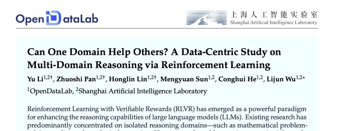 混合数学编程逻辑数据,一次性提升AI多领域强化学习能力