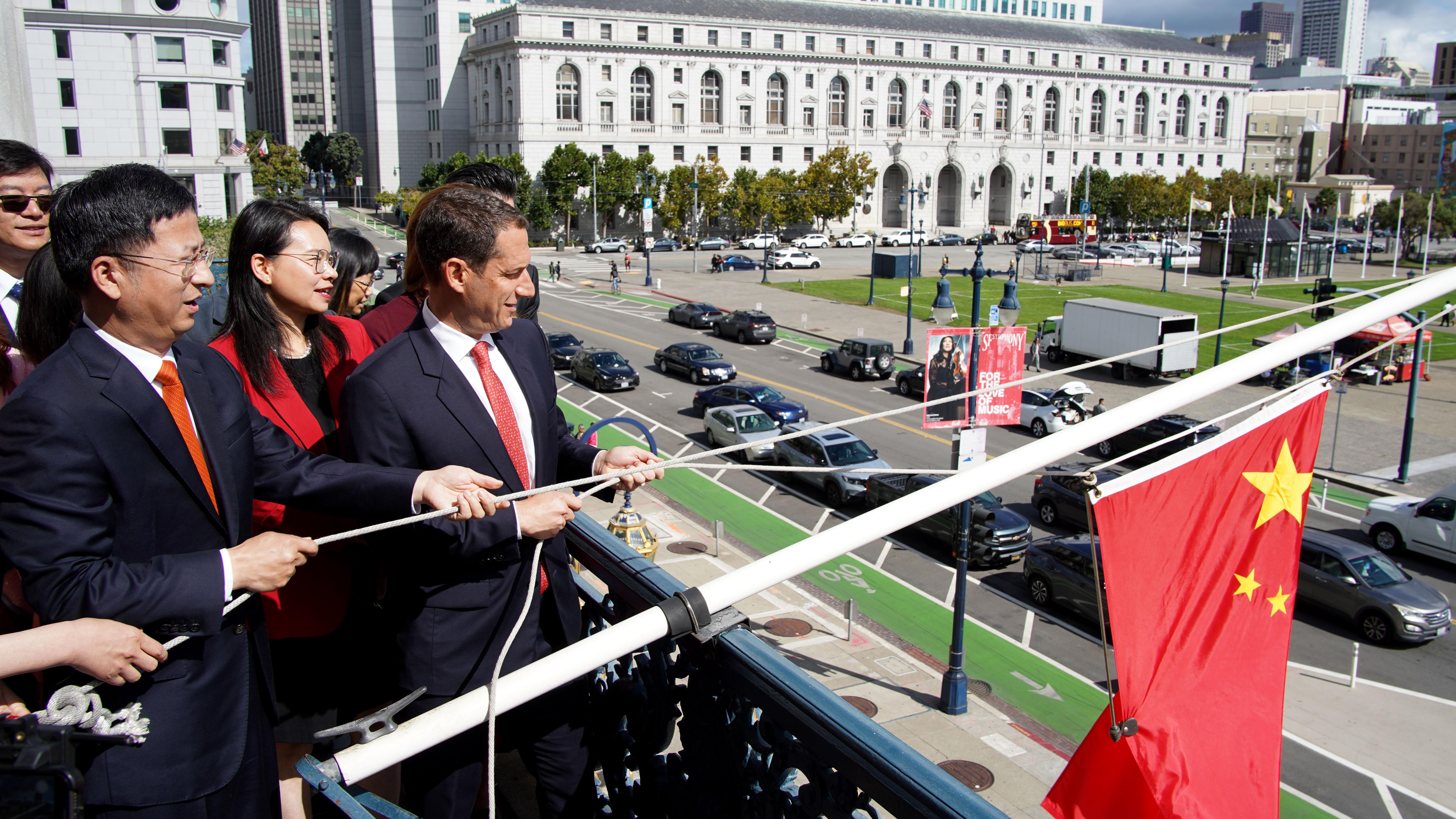 人民网旧金山9月30日电 (记者邓圩)此间时间9月30日,旧金山市政厅举行中国国旗升旗仪式,庆祝中华人民共和国成立76周年,纪念旧金山与中国 的深厚友谊,以期互利共赢。中国驻旧金山总领事张建敏与旧金山市长丹尼尔·罗里当日握手共祝双边关系美好未来。罗里市长当日颁发宣言证书,宣布 2025年9月30日为 "中美友谊与文化传承日"。 the production 100 (导) Color (3) @ 旧金山市长罗里接受记者采访。谢为人摄 0 No. r and the program of the states of the states of the states of the states of the states of the states of the states of the states of the seat of the see and the first and the 16 BHERRY HU MAYDR Turn 在旧金山市政厅阳台,中国驻旧金山总领事张建敏(左一),与旧金山市长丹尼尔·罗里(右一)一起升起中国国旗。谢为人摄 在旧金山市政厅,中国驻旧金山总领事张建敏(左三),接过旧金山市 ...