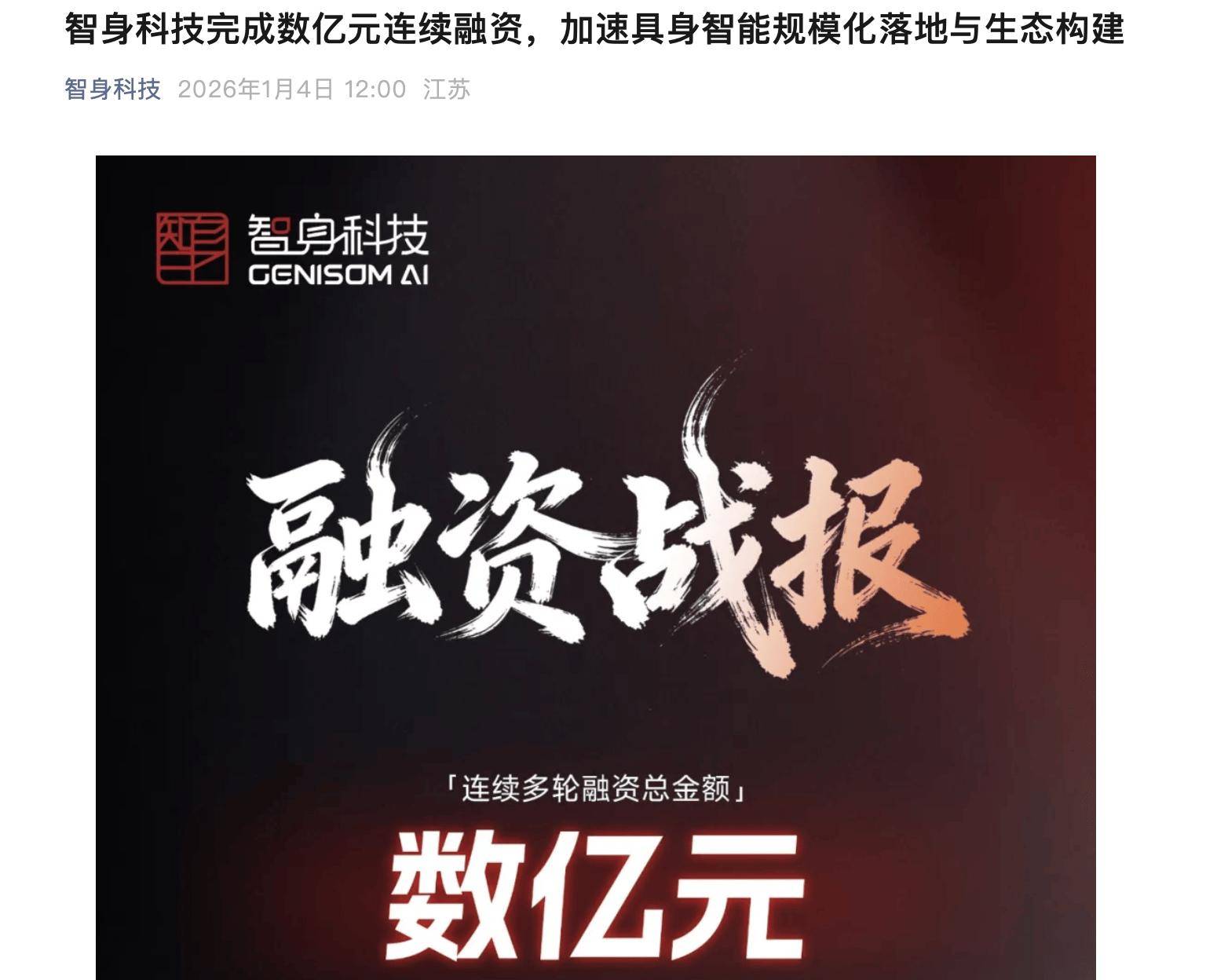2026年首个具身智能融资诞生:智身科技完成数亿元融资,智元机器人参投