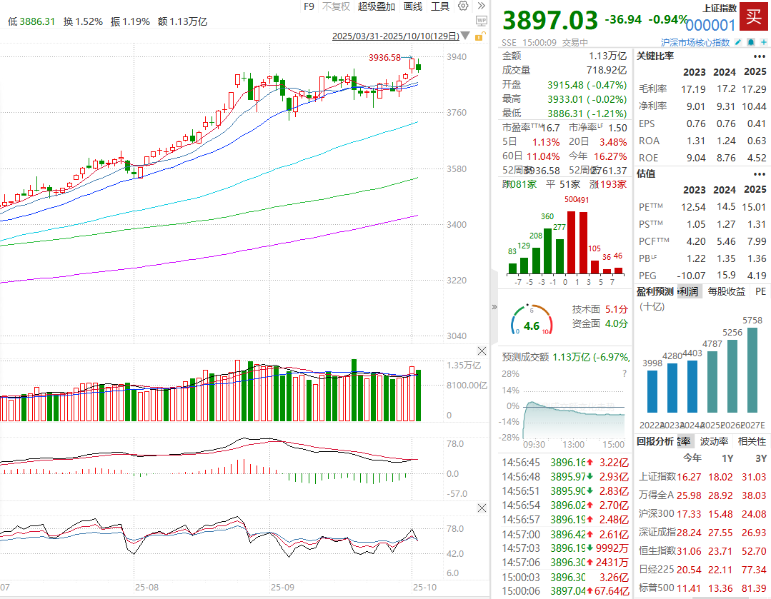 【环球网财经综合报道】A股市场在2025年第四季度迎来良好开局,上证指数于10月首个交易日突破3933.97点,创下近十年新高。面对这一火热行情, 多家外资机构一致看好A股四季度表现,并明确指出,"科技创新"将继续引领市场投资主线。 三大支柱支撑行情 对于全球投资者而言,A股市场的吸引力正与日俱增。机构分析师普遍认为,当前A股估值在全球范围内处于合理偏低水平,无论是进行多元化资产配 置,还是对冲美元资产风险,都具有极高的性价比。 "从全球股指横向比较来看,A股近期估值合理偏低。"蒋先威表示,截至9月26日,MSCI中国指数估值为13.5倍,吸引力凸显。孟磊也补充道,A股的股 权风险溢价仍处于历史10年均值上方,显示市场风险偏好远未过热,上涨带来的赚钱效应将吸引更多海外投资者入场。 此外,美联储重启降息周期导致中美利差收窄,叠加中国经济的持续复苏和美国经济"例外论"的消退,共同为人民币汇率提供了支撑,进一步增强了人民 币资产的吸引力。 " 科技创新 " 主线获一致认同 在投资方向上,外资机构对"科技创新"作为市场主线的看法高度一致。今年以来,科创50与创业板指双双大涨超51%,已充分展现了科技板块的强劲势 头。 ...