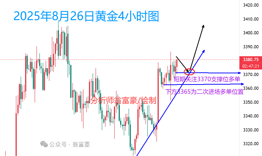 翁富豪:8.27 黄金降息利好加持!3370先多,3386上冲3400!