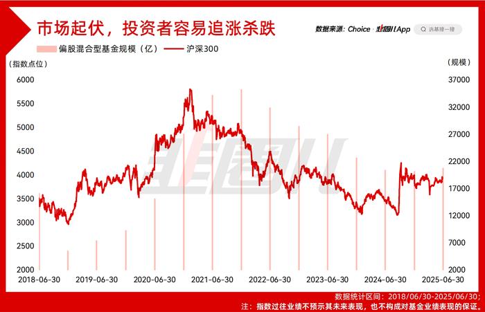 追涨杀跌是人性,我们对比偏股混合型基金的规模变化与沪深300的走势能很明显的看到这一点。 咱们更容易在高点大胆买入,而在低点小心谨慎,导致最终错失配置良机。 只能说,大家对资产配置还处于初学阶段,依然需要FOF等多元资产配置工具。 上半年,FOF规模较年初合计增长了356亿,(截至:2025/6/30;数据来源:万得)是连续3年规模萎缩 之后的首次回暖。 其中,偏债混合型FOF值得关注。 以万得偏债混合型FOF基金指数为例,从过往表现来看,相比沪深300和FOF基金指数波动较小、回撤 较低、夏普较高, 帮助抵御市场波动。 另一方面以债券基金打底,追求低波动的FOF基金,很适合银行渠道的客户群体。 以招行为例,从托管人视角看,截至2025/6/30招行FOF的保有规模已经达到了460亿。 | 基金托管人视角的 | | | --- | --- | | FOF规模保有量排行 | | | 托管行 | 规模(亿) | | 招商银行 | 460 | | 建设银行 | 174 | | 农业银行 | 159 | | 中国银行 | 148 | | 工商银行 | 117 | | : Choice · IFF LADD | 数据统 ...