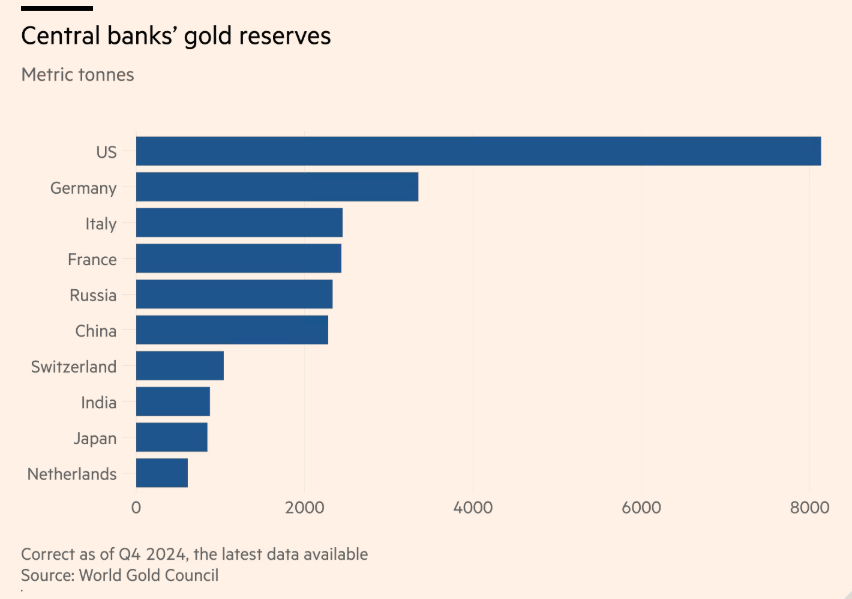 黄金储备保管争议 - 德国和意大利作为全球第二、第三大黄金储备国,分别持有3352吨和2452吨黄金,均将超过1/3的黄金储备存放在美国纽约联邦储备银行,市值超过2450亿美元 [1][3] - 欧洲政界和分析人士担忧特朗普政府干预美联储独立性及地缘政治风险,主张将黄金运回本国以确保金融安全,德国左翼政客法比奥·德·马西和意大利评论员恩里科·格拉齐尼均提出相关批评 [1][3] - 欧洲纳税人协会已致函德意两国财政部和央行,建议终止依赖美联储作为黄金保管人,强调需确保欧洲央行对黄金的绝对控制权 [3] 央行黄金储备趋势 - 全球70多家央行的调查显示,更多央行考虑将黄金储备存放于国内,因担忧危机时无法获取海外存储的黄金 [4] - 中国、法国、俄罗斯等国将绝大多数黄金储备保留在国内,而美国作为全球最大黄金储备国,同时为意大利、黎巴嫩等国提供保管服务 [4] - 德国2013年通过耗资700万欧元的行动将674吨黄金从巴黎和纽约运回法兰克福,目前仍有37%储备留在纽约 [6] 历史与政治因素 - 二战后西欧国家因贸易顺差积累大量黄金储备,法国总统戴高乐在20世纪60年代因不信任布雷顿森林体系将黄金转移回巴黎 [6] - 德国2010年草根运动推动黄金回流,极右翼政党前议员彼得·伯林格强调黄金储存需避免第三方风险 [6] - 意大利总理梅洛尼曾承诺将黄金运回国内,但执政后未采取行动,分析认为其意在维持与特朗普的友好关系并避免贸易战升级 [7] 官方立场与市场信号 - 德意志联邦银行声明称定期评估黄金存储地点以确保流动性,并强调纽约联储仍是可靠合作伙伴 [7] - 德国投资人士伯特·弗洛斯巴赫指出,高调运回黄金可能释放对美关系恶化的信号,德意两国目前尚未准备采取行动 [7]