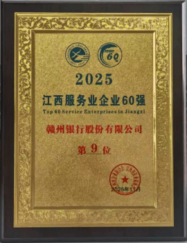 赣州银行上榜2025江西企业100强和江西服务业企业60强