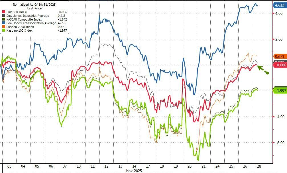 资产表现 - 标普500指数在11月最后一周累计上涨3.7%,创下自2008年雷曼危机以来最好的感恩节周表现 [1] - 美债、大宗商品和加密货币等各类资产在本周均出现集体强劲反弹 [1] 市场驱动因素 - 市场转折点源于美联储官员的鸽派表态 [1] - 充裕的流动性为市场构筑了安全网 [1] - 财政部和美联储的双重看跌期权有效封锁了系统性下跌空间 [1]
