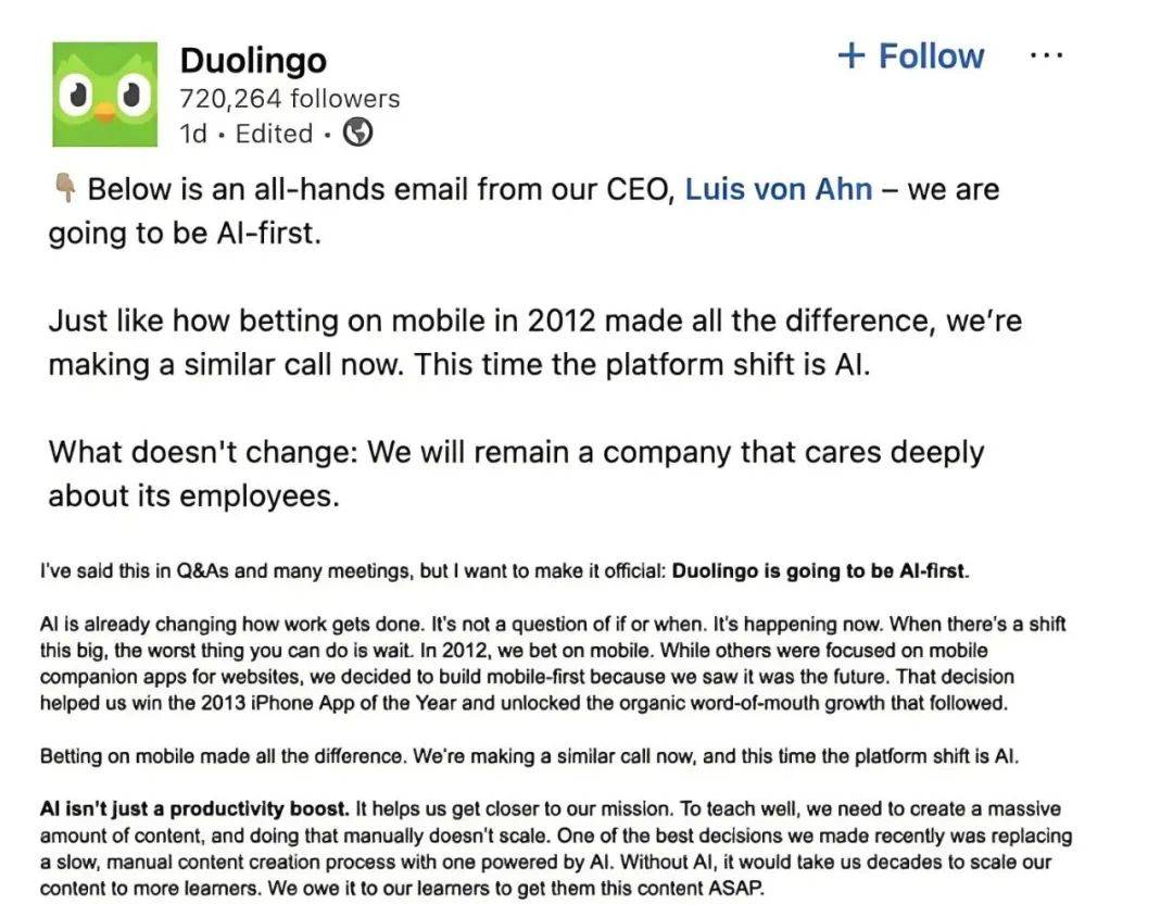 我就把身边平凡人对AI的反应逐一罗列,拼出一张更真实具象的图景。 一、跑在前面:美国那头的裁员 我亲戚从美国回来,他在加州生活了三十多年,他女儿也在美国出生和长大。我们很自然地谈到特朗普、对中美关系、对等关税,美元和小费暴涨等话 题。 关于"我们将被取代",3年来你听惯了碎片的信息、焦虑的新闻,不可阻挡的历史潮流。"未来是诗与远方已经留给了AI,锅碗瓢盆留给人类"。 人都会裹挟被某一股力量营造的宏大叙事的思潮之中——火车vs马车的段子,资本主义更为先进生产力(哪怕英国的圈地运动和羊吃人),自由贸易流动 竞争是好事、互联网的侵袭实体是进步。这叙事都有着一种"政治正确",胆敢否定的人,你看你妈相信骗人的保健品、买养老理财那样,你有一种所谓的 文化优越感来阻止你妈。 2022年10月起,ChatGPT横空出世,有无数学者、媒体、投资人、产业家预言——这一轮"生成式AI"会彻底改变世界,人类将被取代。 但这客观吗?你真问过你妈需要什么,体验过他们的感受吗? 身陷于此的朋友告诉我,裁员原因并非中国区业务下滑,而是与中美数据安全的《14117行政令》在4月初实施有关,要求中美数据之间要有严格的隔离, 花旗科技子公司和微软 ...