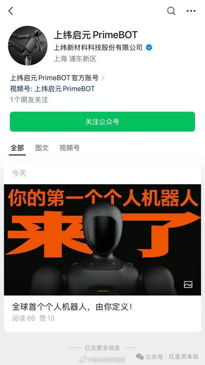 公司动态与产品发布 - 上纬新材于12月31日发布了全球首款全身力控小尺寸人形机器人“启元Q1” [1] - 公司宣布将以“上纬启元”品牌进军个人机器人赛道 [1] - 启元Q1被描述为全球最小全身力控人形机器人,在关节系统、整机尺寸与应用场景上实现多项突破,将实验室级能力浓缩至背包大小 [3] - 该机器人主要面向科研者、创意玩家与广泛的家庭用户 [3] - 截至2025年12月31日,上纬新材股价报127.37元/股,市值514亿元 [3] 产品技术特点 - 公司通过材料、结构与控制算法的多维创新,将QDD准直驱关节成功压缩至“比鸡蛋还小”,同时完整保留了全尺寸机型的力控性能与高动态响应能力 [3] - 机器人重量降低,具备“耐摔、耐炸”的物理特性,即便从高处跌落也能保持稳定运行 [3] - 小型化设计降低了研发试错成本 [3] 公司战略与品牌定位 - 新品牌“上纬启元”将明确聚焦“个人机器人”方向,致力于将高端机器人技术转化为普通人可拥有、可操作、可创造的个人设备 [3] - 此前,公司官方订阅号曾推送即将发布人形机器人新品牌的信息,但随后删除了相关文章 [3] 公司控制权变更 - 今年早些时候,科创板上市公司上纬新材控制权变动,智元机器人董事长和创始人邓泰华控制的主体收购了上纬新材控制权,邓泰华成为公司实控人 [3]