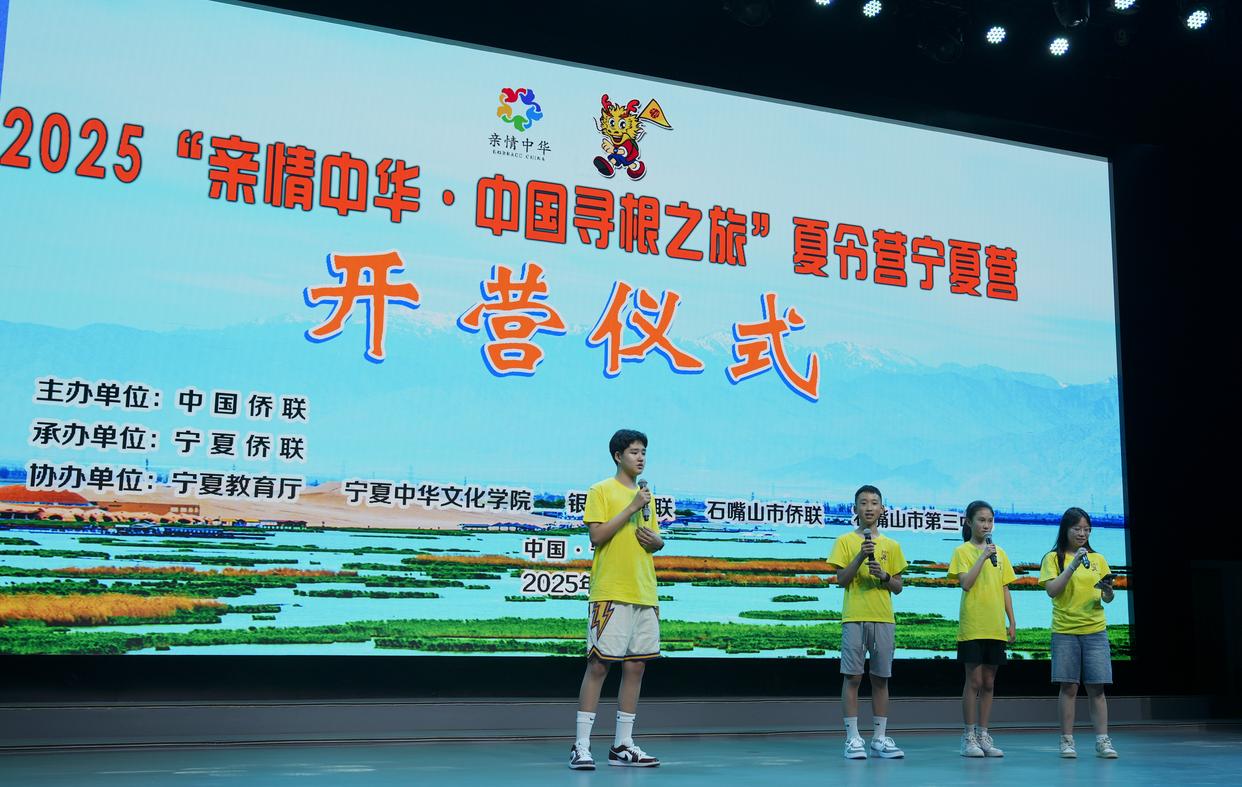 此次,她的两个孩子都报名了夏令营,还和其他营员一起做了一幅十米长的手绘长卷,用稚嫩的笔触画下五星红旗、中国航空航天科技等图案,作为结营仪 式的礼物。 为了让华裔青少年更深度、立体地了解中国,本次夏令营精心设计了"文化课堂+深度体验"多元化内容。营员们将系统研习中国传统服饰及礼仪、剪纸、民 乐等中国传统文化课程,还将参观宁夏贺兰山岩画、葡萄酒庄、沙坡头景区、水洞沟古人类文化遗址等,并结对入住民宿家庭,体验草地音乐会、制作宁夏 传统美食等活动,深度融入当地生活。 新华社银川7月30日电(记者马思嘉、梅鹏鹏)29日下午,2025"亲情中华·中国寻根之旅"夏令营宁夏营正式开营,来自美国、德国、法国、比利时、沙特阿 拉伯等地的50名海外华裔青少年营员、领队与宁夏石嘴山市第三中学师生代表相聚塞上江南,共同开启为期10天的中华文化体验与寻根之旅。 "这是我第一次来宁夏,之前就了解到这里有沙漠,自然风光很壮丽,还可以骑骆驼。"来自德国汉华中文学校的15岁少女罗予琪说,宁夏的人们非常爱笑、 很热情,让她感到非常亲切。 罗予琪在德国汉堡出生,母亲是中国人,父亲是越南人。受母亲影响,她自幼学习汉语,阅读《山海经》等作品,并被盘古开 ...
