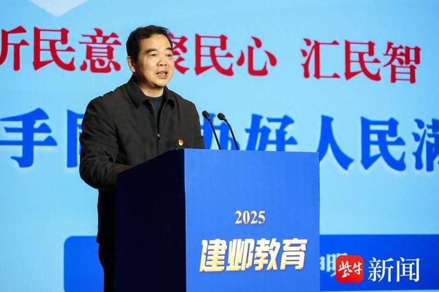 建邺区教育局党组书记吴坤明作《听民意 聚民心 汇民智 解民忧 携手同心办好人民满意的高品质教育》 主题汇报,全面回顾2025年建邺教育的丰硕成果。吴坤明指出,2025年,全区教育系统在区委、区政府 的正确领导下,聚焦高质量发展和教育内涵品质提升,聚力推进新校建设、深化综合改革等重点工作, 携手同心办好教师幸福、学生快乐、家长满意、社会认可的高品质建邺教育。 这一年,全区教育大会描绘强区建设新蓝图,明确到2027年率先建成现代化教育强区,打造"学在建 邺"闪亮名片,18位专家学者加盟教育智库,与南京大学等四所高校签署战略合作协议;教育党建引领 成效显著,全区公办中小学校党组织领导的校长负责制改革100%落地落实,暑期完成109名负责干部调 整;教师队伍建设再攀新高,省特级教师29人、市学科教学(含德育)带头人99人、市优秀青年教师 (含德育)166人,区级以上骨干教师占比达42.9%,各项指标省市领先;五育融合助力学生全面发 展,学生在国际国内各类大赛中屡获殊荣,中考连续19年超市均分,稳居全市"第一方阵";聚智赋能打 造办学新品牌,多所学校获评国家级、省级特色学校或入围重点项目;校家社协同育人新生态持续优 化 ...