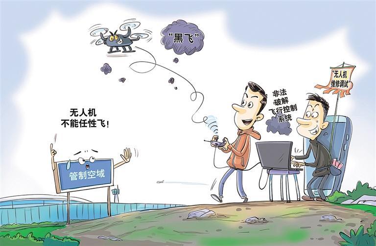 王 鹏作(新华社发) 无人机产品正加速走进千家万户和千行百业,拍摄爱好人群也日益庞大。与此同时,无人机超高飞行和飞入 管制空域的情况时有发生,带来"头顶上的隐患"。近日有调查发现,有人非法破解无人机飞行控制系统,使 其能在原本禁止飞行或有高度限制的区域自由飞行,甚至催生"有偿破解"的黑色产业链。守护低空安全需构 建制度规范和协同监管的多元防线,堵住技术漏洞,明确飞行规则,推动产业发展与安全治理相统一。应督 促无人机生产企业升级软硬件技术、封堵破解漏洞,加强技术开发,完善无人机误入管制空域后的系统自动 返航、超高飞行自动下降等防控功能,并将相关技术和要求纳入行业标准。(时 锋) ...