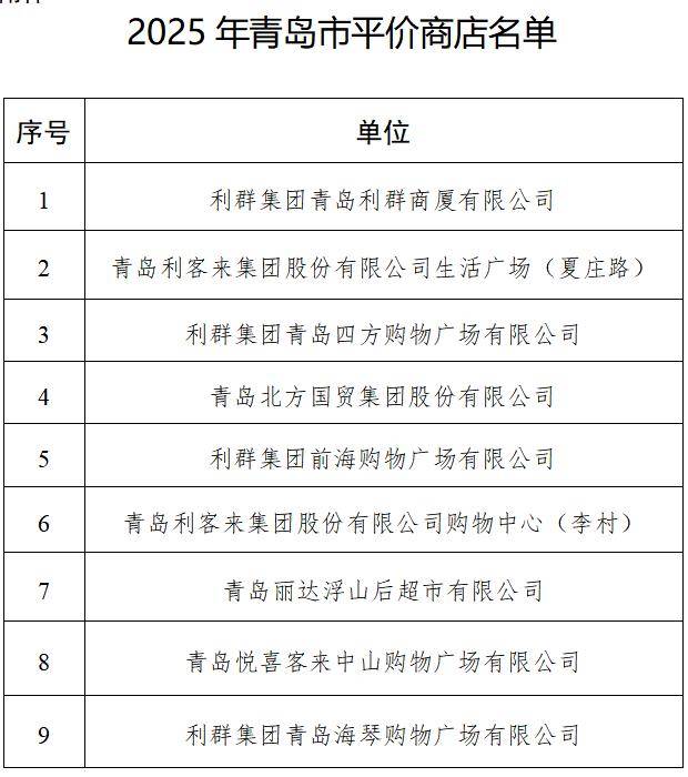 2025年青岛市平价商店名单发布,平价商品低于当地同类市场均价5%-10%