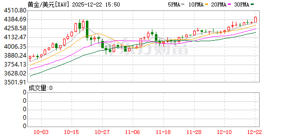 黄金再创新高!现货黄金首次站上4400美元/盎司,今年以来累涨近68%。 二级市场上,A股贵金属板块22日高开拉升,截至发稿涨超4%,晓程科技、湖南白银、西部黄金涨超5%,中金黄金、紫金矿业、山东黄金、四川黄金涨 超4%,赤峰黄金、招金黄金涨超3%。 港股黄金股震荡走强,灵宝黄金、中国黄金国际涨超5%,山东黄金、赤峰黄金涨超4%。 22日,现货黄金大幅拉升,截至发稿涨超1.6%,现报4410.285美元/盎司,创历史新高。纽约期金日内涨超1%,现报4434.6美元/盎司。 | ギ | 足金 (饰品、工艺品类) | 1368元/克 | | --- | --- | --- | | 零售金价 | | | | | 工艺金章金条类 | 1199元/克 | | 羊入 | 黄金增值服务金价 | 1160元/克 | | 黄金增值服务 | (金条、金章不作增值服务) | | | 洋 黄金回收服务 | 黄金回收服务金价 | 951元/克 | 来源:周大福每日金价 实物黄金方面,12月22日,周大福今日金价报足金(饰品、工艺品类)1368元/克,工艺金章金条类1199元/克,黄金增值服务金价1160元/克,黄金回收服务 金价951 ...