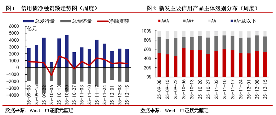 报告行业投资评级 未提及 报告的核心观点 - 市场对城投2027年6月后的风险评价整体上行,但“信仰”暂无动摇,在债市涌现更多利好之前,多关注3Y以内城投债挖掘价值,对3Y左右收益率曲线偏陡峭的,可小幅突破3Y期限获取骑乘收益 [6][9] - 临近年末债市表现整体偏弱且波动放大,因银行、保险等机构观望情绪偏重、配置力量不强,而交易盘表现活跃,向后看债市预计仍以高波动状态为主,收益率中枢大概率持平偏小幅上行,中短信用是较优品种 [6][9] - 3Y以内信用债修复态势较好,收益率基本回到11月下旬水平,5Y虽有所企稳但未出现明显向下趋势,市场对信用债久期把控严格,较多主体3Y左右收益率曲线偏陡峭 [6][9] - 自万科债券展期后,市场对城投2027年6月后的风险评价整体上行,但观点暂未出现明显分歧,出库压力更大的是产业债,如地产、建工等行业 [6][9] 各部分总结 信用债周观点 - 市场对城投2027年6月后的风险评价整体上行,但“信仰”未动摇,建议关注3Y以内城投债挖掘价值,对3Y左右收益率曲线偏陡峭的,可小幅突破3Y期限获取骑乘收益 [6][9] - 临近年末债市偏弱且波动放大,因机构观望、配置力量不强,交易盘活跃,向后看债市高波动,收益率中枢大概率持平偏小幅上行,中短信用是较优品种 [6][9] - 3Y以内信用债修复好,收益率回到11月下旬水平,5Y企稳但无明显下行趋势,市场对信用债久期把控严格,较多主体3Y左右收益率曲线偏陡峭 [6][9] - 万科债券展期后,市场对城投2027年6月后风险评价上行,观点无明显分歧,产业债出库压力更大 [6][9] 信用债周回顾 负面信息监测 - 2025年12月17日,武汉天盈投资集团有限公司未能支付“H20天盈3”债券利息1.088亿元及本金4亿元,逾期规模5.088亿元,最新债项/主体评级为BB/BB [13] - 2025年12月17日,惠誉将万科企业股份有限公司的长期外币和本币发行人违约评级从“CCC-”下调至“C”,将万科地产(香港)有限公司的长期发行人违约评级从“CCC-”下调至“CC”,将万科香港的高级无抵押评级及其未偿高级票据的评级从“CC”下调至“C”,回收率评级为“RR5”,并移除所有评级的负面评级观察 [15] - 2025年12月15 - 21日,商丘市发展投资集团有限公司、九江市国有投资控股集团有限公司等多家公司出现债券募集资金未按约定用途使用、未及时披露定期报告等负面事件 [16] 一级发行 - 12月15 - 21日信用债一级发行2620亿元,环比缩减4%,总偿还量2046亿元基本持平,净融入575亿元,净融入额略有缩减 [17] - 上周统计到10只取消/推迟发行信用债,规模合计51亿元,数量和规模均下滑 [18] - AA+级发行成本环比大幅上行,上周AAA、AA+级平均票息为2.27%、2.96%,环比分别上行1bp、39bp,新发AA/AA - 级新债频率仍低 [18] 二级成交 - 上周各等级、各期限信用债估值继续小幅修复,平均约 - 1bp,信用利差被动走阔3bp左右,中长期限收益率下行幅度更大,无风险利率下行幅度更大 [21] - 中低等级5Y - 1Y期限利差明显走阔,幅度可达4 - 5bp,3Y - 1Y各等级期限利差均小幅波动;AA - AAA级等级利差中长期限均走阔,5Y最多走阔3bp [23] - 城投债信用利差上周各省全面走阔,中枢约3 - 4bp,各省份之间分化小,云南最多走阔6bp;产业债信用利差上周各行业小幅走阔2 - 3bp [25][26][28] - 二级成交周换手率环比持平,减少0.01pct至1.88%,换手率前十债券发行人基本为央国企,折价超过10%成交的信用债均为万科债 [29] - 单个主体估值变化看,利差收窄或走阔幅度居前的城投分布散乱;产业方面,利差走阔幅度前五的主体多为房企,走阔居前的房企依次为时代控股、碧桂园、融侨和绿地 [30]