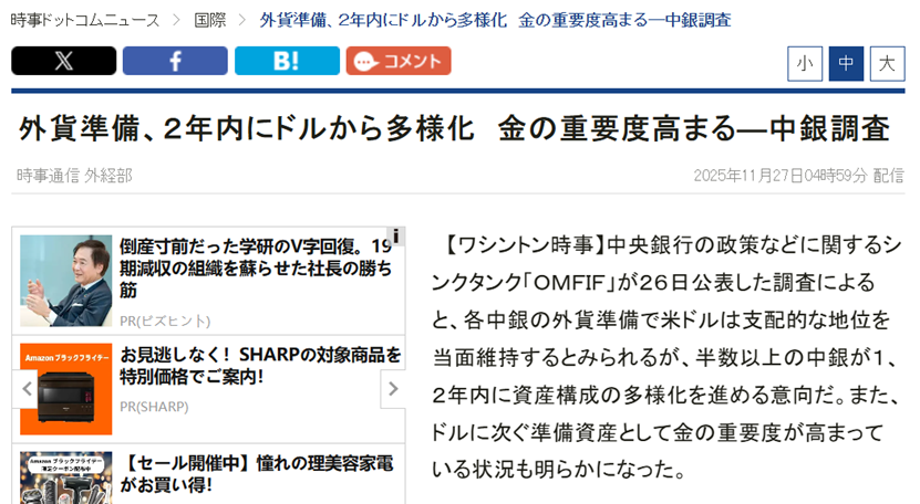 中国央行黄金储备动态与战略意义 - 截至11月底,中国央行黄金持有量达到7412万盎司,较10月底增加3万盎司,为连续第13个月增加 [1] - 增持操作节奏稳定,每月增量不大,但持续不断,反映出一种长远的策略安排 [5] - 黄金储备的持续增加,反映出中国对当前国际金融形势变化的明确判断,以及对外部金融风险的高度戒备和重视 [3] 外汇储备结构优化与金融安全 - 黄金在中国外汇储备结构中的比例正逐渐上升,是金融安全体系的重要一环 [3] - 中国一方面减少对美债的依赖,另一方面增加黄金储备,这是一种资产配置的优化和调整,旨在减少对单一资产的依赖,增强整体储备体系的抗风险能力 [11] - 调整外汇储备结构更多考虑的是稳定性和抵抗风险的能力,而非一味追求最大利润 [5] 对国际货币体系与美元资产的策略 - 中国持有的美债规模一直在缩减,同时增加黄金储备,显示出对全球金融格局的重新认识 [9][11] - 美元依旧是主要的国际储备资产和支付手段,但其领导地位已不像以前那么稳固 [11] - 中国并未公开挑战美元地位,也未大力推动替代方案,但实际操作在打造一种更具韧性、以稳定性、透明度和自主性为重点的金融体系 [23] 黄金在当代金融体系中的作用 - 黄金作为不依赖任何国家信用支撑的储藏资产,其避险作用在当前经济变数多、地缘局势紧、货币政策分化的环境下再次凸显 [3][5] - 黄金的作用主要体现在三个方面:抵御风险、资产多样化、政策保障垫 [17] - 黄金的价值主要在于关键时刻能提供稳固预期,帮助在紧要关头保持外汇储备的流动性和稳定性,减少外部冲击 [19] 政策透明度与国际影响 - 公布黄金数据反映出中国在国际金融领域逐渐提高透明度,变得更主动,信息披露的次数和内容在逐步增加 [7] - 此举有助于市场更好地判断政策动向,稳住外界对中国金融方针的预期 [7] - 黄金储备的增加有助于增强人民币的国际信心,并提升中国在国际金融圈的话语权 [7] - 中国的策略可能起到示范作用,推动全球储备资产多样化成为未来趋势 [25][26]