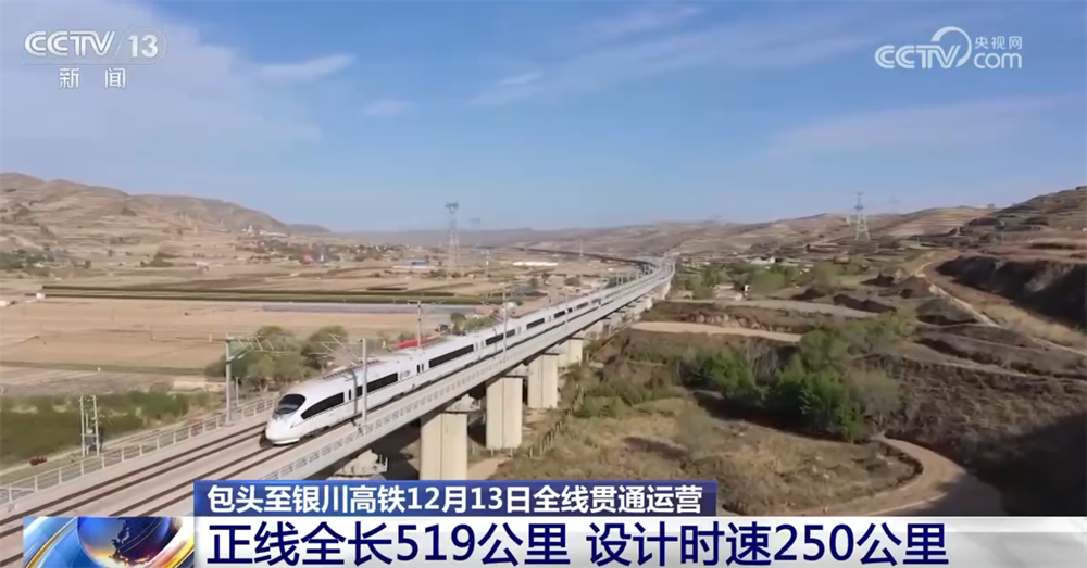 央视网消息:记者从国铁集团获悉,包头至银川高铁包头至惠农段将于12月23日建成通车,包头至银川高铁实现全线贯通运营。 包银高铁起自包头站,经内蒙古自治区包头市、巴彦淖尔市、鄂尔多斯市、乌海市,宁夏回族自治区石嘴山市、银川市,接入银川站,正 线全长519公里,设计时速250公里,实行分段建设,其中,惠农至银川段全长97公里,已于2024年10月开通运营,此次开通的包头至惠农段全 长422公里,共设10座车站。 开通运营初期,包银高铁包惠段按最高时速250公里运营,每日安排开行动车组列车最高达12列,其中跨线动车组列车7列。包头至惠农 南、银川最快分别2小时7分、2小时38分可达,较目前普速旅客列车分别压缩2小时29分、3小时20分。呼和浩特至银川、兰州最快分别4小时03 分、7小时27分可达,较目前最快旅客列车分别压缩3小时54分钟、2小时59分钟。 包银高铁与北京至包头高铁、银川至兰州高铁共同构成我国"八纵八横"高铁网北京至兰州通道。全线贯通运营后,我国西北地区高铁路网 布局进一步完善,内蒙古巴彦淖尔市、乌海市将进入"高铁时代"。 ...