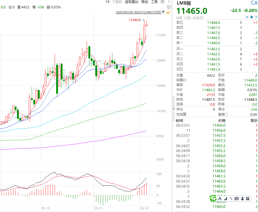 铜价创历史新高 - 伦敦金属交易所铜期货于12月3日大幅上涨2.72%,盘中一度触及每吨11540美元的历史新高价位 [1] - 铜价飙升带动全球矿业股强劲表现,智利铜生产商Antofagasta股价单日大涨逾5%,同样创下历史新高 [1] 市场供需与库存动态 - 全球铜市场供需关系急剧失衡,为规避潜在关税风险,大量铜金属正加速流向美国,导致全球其他地区库存可能很快降至低位 [2] - 伦敦金属交易所亚洲仓库铜净注销仓单规模在周二高达50725吨,导致LME铜注册仓单数量骤降至105275吨,为7月以来最低水平 [2] - 亚洲仓库提货活动骤然升温,表明贸易商和下游用户正急于提取实物铜,市场分析认为相当一部分金属正被运往美国进行套利 [3] - 伦敦金属交易所现货铜相对三个月合约的溢价在周三飙升至每吨86美元,创下10月中旬以来最高水平,是市场供应紧张的直接信号 [3] 价格上涨的核心驱动因素 - 推动“抢铜”热潮的核心因素是美国前总统特朗普提出的关税计划,其威胁已在实物市场产生巨大影响,并导致美国铜期货价格飙升 [3] - 尽管铜价上涨有矿山供应困难等基本面支撑,但当前主导价格上涨的更可能是美国与世界其他地区之间的价格套利行为 [3] - 大型金属贸易商Mercuria Energy Group警告,当前贸易动态可能在明年第一季度引发全球供应的严重紧缩,并预测铜价将进一步突破历史高位 [4] - 道明证券高级大宗商品策略师Dan Ghali指出,关税威胁在明年上半年将成为推动价格上涨的“催化剂”,将无意中耗尽全球库存 [4] 供给侧面临的挑战 - 过去几个月,从智利到印度尼西亚的矿山停产潮已导致全球铜供应持续承压 [4] - 艾芬豪矿业公司下调了其位于刚果(金)的大型Kamoa-Kakula矿区的产量预期 [4] - 全球第六大铜生产商嘉能可也下调了明年的铜产量目标 [4] 市场未来展望 - 在基本面与金融因素的双重驱动下,市场对铜价未来走势普遍持乐观态度 [4] - Commodity Market Analytics董事总经理Dan Smith表示,铜价在突破新高后依然看涨,很有可能从此攀升至每吨12000美元 [4]