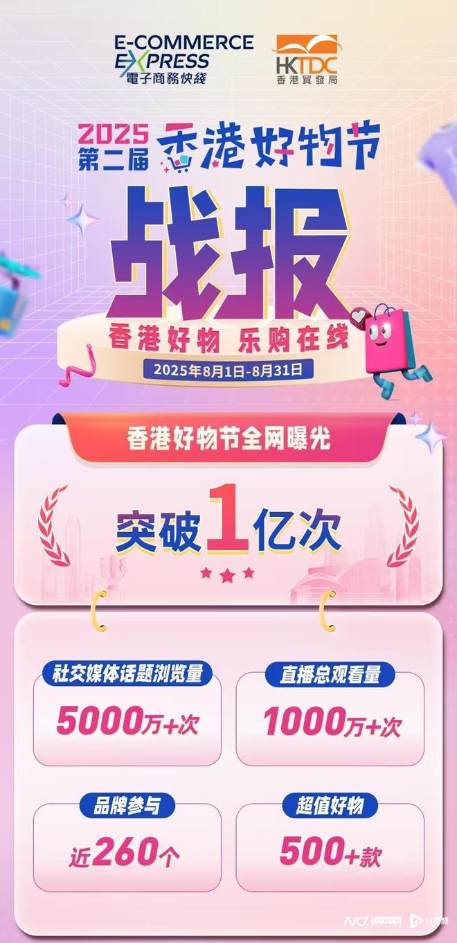 全网曝光超1亿人次,李佳琦等头部主播强势助阵……刚于2025年8月落下帷幕的第二届香港好物节,再 度引爆消费热潮! 作为香港贸发局助力中小企拓展内地电商市场的重要举措,香港好物节从2024年的举办首届活动,演进 至2025年"电子商务快线"旗舰活动的规模升级,成为连接粤港澳大湾区资源、促进两地消费融合的重要 桥梁。未来三年,香港好物节将继续升级举办香港好物节,通过更丰富的活动矩阵、更精准的资源对接 和更全面的能力赋能,为香港企业提供良好的展示及推广平台,扩大品牌影响力和市场覆盖。 瞄准内地电商市场商机 搭建港商内地掘金平台 回顾香港好物节的发展历程,两届活动交出亮眼答卷。2025年8月举办的第二届香港好物节,堪称爆发 年,吸引近260个品牌踊跃参与,汇聚食品饮料、个护美妆、生活家品、数码潮玩等品类,通过在淘 宝、京东、抖音三大平台打造主会场以及李佳琦、胡可等主播现身带货,最终直播总观看量超1000万人 次,社交媒体话题浏览量超5000万,全网曝光突破1亿次。从首届试水到第二届爆发,不少参与港商销 量实现倍数增长,调研显示,超80%的参与港商表示将继续报名。 由香港贸发局主办的香港好物节,正是瞄准了持续深化的促 ...