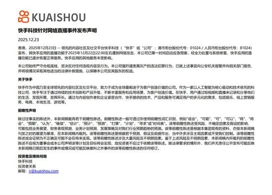 每经记者|王郁彪 每经编辑|何小桃 文多 12月22日晚10点左右,一场突如其来的大规模网络攻击席卷了快手直播平台。 数万个被操控的"僵尸账号"同步涌入直播间,色情、暴力等违规内容在短时间内集中爆发,部分直播间观看人数甚至破万。 舆论哗然,多位群众直接报案。快手当晚紧急回应称,平台遭到灰黑产攻击,已紧急处理修复中。快手称,平台坚决反对违规内容,相应情况已上报给相 关部门,并报警。 图片来源:网络截图 或受此事件影响,市值超2700亿港元的快手-W(HK01024)股价在12月23日盘中一度下跌超5%。据公告,经全力处置与系统修复,快手应用的直播功能 已逐步恢复正常服务。快手应用的其他服务未受影响。 平台紧急拉闸背后,是什么灰黑产如此猖獗?直播审核防线为何崩溃?就连快手这种老牌厂商都招架不住?《每日经济新闻》记者多方采访了解,类似大 规模事件在行业内确实堪称罕见,背后,一场针对网络平台内容安全防线的技术战正无声博弈,激烈空前。 一度封禁不止 快手直接下架直播频道 对于快手来说,刚刚过去的一晚,惊心动魄。 《每日经济新闻》记者注意到,有用户在社交平台发布的录频信息显示,当时快手平台直播频道内出现了存在大量色情、暴 ...