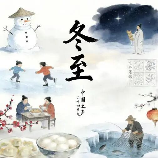 "冬至"是二十四节气中的 第二十二个节气 也是冬季的第四个节气 "至者,极也;阴极之至,阳气始生" 这一天北半球白昼最短、黑夜最长 冰封时刻却蕴藏新生 人们数九盼春、静藏蓄能 奔赴岁末团圆 节气中国·冬至156 冬至时节 中国之声 邀您通过三维菁彩声 在天地时序中 听见时代新声 (请您点击收听,戴上耳机,体验更佳↓) 0:00 / 0:00 家是归处,人皆团圆 一起聆听 总台中国之声主持人杨波 朗诵的《小至》 0:00 / 0:00 小至51 《小至》 【唐】杜甫 天时人事日相催,冬至阳生春又来。 刺绣五纹添弱线,吹葭六琯动浮灰。 岸容待腊将舒柳,山意冲寒欲放梅。 完成的情感凝聚与团圆 云物不殊乡国异,教儿且覆掌中杯。 "冬至"在此诗中 是天地静默中趋向团圆的隐喻 "阳生春又来" 以初萌的阳气为春日埋下伏笔 添线、动灰、舒柳、放梅 皆是万物响应天地召唤 预备重聚的生动协音 纵使漂泊异乡"云物不殊" 但"教儿覆杯"的温情举动 正是人们以最微小的家庭仪式 全诗借冬至之"生" 将天地循环与人间祈盼圆满相连 中国之声为您准备了 "云"赏冬至 感受冬至的美好时刻 (视频/动图由AI生成) 0:00 △糯圆添岁,饺子御寒 ...