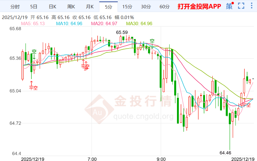 今日周五(12月19日)亚盘时段,国际白银目前交投于64.97一线上方,今日开盘于65.44美元/盎司,截至发稿,国际白银 暂报65.12美元/盎司,下跌0.49%,最高触及65.59美元/盎司,最低下探64.46美元/盎司,目前来看,国际白银盘内短线 偏向看涨走势。 【要闻速递】 当地时间18日,美国白宫官员发布消息称,美国中东问题特使威特科夫将于当地时间19日在美国迈阿密与卡塔尔、埃 及和土耳其高级官员举行会晤,重点讨论加沙停火第二阶段。 据悉,卡塔尔、埃及、土耳其和美国四方认为,以色列和哈马斯均在拖延,避免落实停火协议的第二阶段,因此各方 迫切希望制定联合方案,推动双方履行承诺。 此次会议将是自2025年10月加沙停火第一阶段协议生效以来相关斡旋方举行的最高级别会晤。 消息称,与会人员包括卡塔尔首相穆罕默德、土耳其外长费丹以及埃及外长阿卜杜勒阿提。本次会议也将为12月29日 以色列总理内塔尼亚胡与美国总统特朗普在海湖庄园的会晤做准备,届时双方将讨论包括加沙停火在内的多项议题。 【最新国际白银行情解析】 国际白银昨日高位收阴,未破破高,日线RSI回落,4小时呈圆弧顶,刺破65一线支撑,短线趋势转弱,多单可 ...