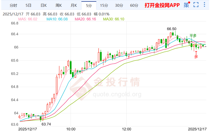 总的来说,这可能促使在上次会议上持不同意见的美联储政策制定者重新评估他们的立场,提高2026年提前降息的可能 性。话虽如此,古尔斯比和施密德是上周要求保持利率不变的两位主要反对者,但明年他们将退出票委席位,应该是哈 玛克和洛根取而代之,但他们可能更加鹰派。 因此,想要改变他们的想法,让他们更坚定降息,将是一项艰巨的任务。然而,劳动力市场降温将继续削弱他们的决 心,因为数据证据的平衡削弱了美联储维持利率不变的理由。因此,美联储在2026年提前放松货币政策的可能性越来越 大。 今日周三(12月17日)欧盘时段,国际白银目前交投于65.78一线上方,今日开盘于63.72美元/盎司,截至发稿,国际白银暂 报66.00美元/盎司,上涨3.55%,最高触及66.51美元/盎司,最低下探63.63美元/盎司,目前来看,国际白银盘内短线偏向 震荡走势。 【要闻速递】 加拿大帝国商业银行指出,非农就业数据反映出美国劳动力市场状况进一步疲软,另一方吗,消费更有弹性表明需求状 况仍然保持得相当有利。 若跌破20期EMA,将使日内偏向转为下行,使银价向60.00美元的心理关口变得脆弱。而持续保持在其上方将保留上涨空 间,并保持进一步 ...