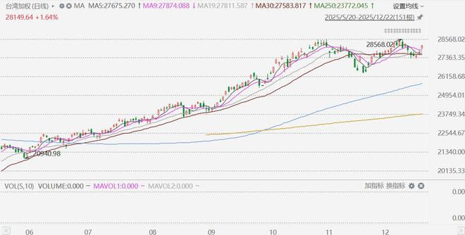 格隆汇12月22日|台湾加权指数收盘上涨453.29点,涨幅1.64%,报28149.64点。 来源:格隆汇APP ...