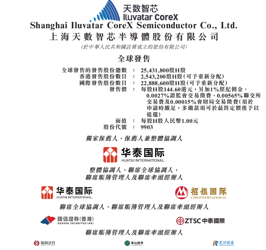 招股价144.6港元,中国首家通用GPU企业天数智芯启动招股
