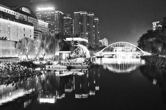 本报讯(记者朱松梅 通讯员董文辉)把楼宇当作画布,以绚烂光影庆祝佳节。奥林匹克中心区、亮马 河等文旅地标,在长假期间开启了灯光秀。 璀璨灯光点亮亮马河。 本报记者 程功 摄 暮色中,奥林匹克塔已换上"中国红"的华服。"热烈庆祝中华人民共和国成立76周年""祝福祖国""欢度 国庆"的字样,与光影幻化的绸带、礼花、和平鸽以及娇艳的牡丹、月季交织,缓缓铺展开一幅璀璨的 国庆画卷。 对祖国的深情告白,还在朝阳区多个地标建筑群上演。大望京的6栋建筑变成了"画布",光影演绎了名 画"千里江山图"。"祝福祖国""欢度国庆"的字样,在CBD楼宇间缓缓流转,京广中心、阳光金融、正大 中心的楼宇外立面上,五彩气球与盛放的牡丹借光影相拥。 京城的文旅金名片——亮马河沿线同样灯光璀璨。80万平方米的水岸之间,建筑、树木和艺术雕塑,都 被柔和的灯光点亮,24座跨河桥造型各异,在光影中愈发拥有了浓郁的艺术气息。 亮马港湾是河流上的一组建筑群,主体是铂宫船闸,游船在上下游之间穿行时,需要这座船闸调节水 位。长假期间,亮马港湾上演了国风满满的灯光秀,灯光投射在建筑群的外立面,一朵朵荷花唯美绽 放,红鲤、凤凰自在嬉游。 自9月30日至10月8 ...