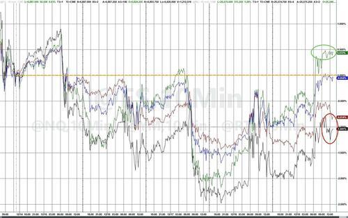 美股市场整体表现 - 美股市场呈现鲜明分化走势 道指与标普500指数携手刷新历史纪录 而科技股则承压回调 [1] - 道琼斯工业平均指数大涨646.26点 涨幅1.34% 收于48704.01点 盘中与收盘均创历史新高 [1][2] - 标普500指数微涨0.21% 收于6900.99点 连续两日刷新收盘纪录 [1][2] - 纳斯达克综合指数下跌0.25% 收于23593.86点 科技板块成为主要拖累 [1][2] - 年初至今 道指上涨14.48% 纳指上涨22.18% 标普500指数上涨17.33% [2] 科技股与AI主题表现 - AI投资风向标公司甲骨文股价暴跌10.83% 市值蒸发689亿美元 其云业务收入不及预期 同时宣布2026年资本支出指引大幅上调150亿美元至500亿美元 引发投资者对“AI资本开支过热”的担忧 [3] - 市场策略师认为 市场对甲骨文以及整体AI交易的担忧是合理的 因为现在企业对AI已做出数万亿美元的投入承诺 甲骨文在某种程度上成了预警信号 [5] - 科技巨头集体承压 谷歌母公司Alphabet股价下跌2.43% 英伟达下跌1.55% 特斯拉下跌1.01% 亚马逊下跌0.65% 苹果下跌0.27% [5][6] - 微软股价上涨1.03% Meta微涨0.40% 呈现分化表现 [5][6] - 迪士尼股价上涨2.4% 此前宣布向OpenAI投资10亿美元 同时授权后者在AI视频生成工具Sora使用旗下众多IP 这一消息在一定程度上缓解了市场对AI领域的担忧 [5] 中概股表现 - 纳斯达克中国金龙指数收跌0.09% 热门中概股涨跌不一 [6] - 百度股价上涨1.78% 蔚来涨近2% 世纪互联涨超1% 腾讯控股ADR上涨0.43% 小米集团ADR上涨0.93% 美团ADR上涨1.63% [6][7] - 阿里巴巴股价下跌1.22% 知乎、哔哩哔哩跌超1% 拼多多股价下跌2.87% 小鹏汽车跌超2% 京东集团下跌0.24% [6][7] 贵金属与加密货币市场 - 现货黄金收涨1.27% 报4282.49美元/盎司 现货白银收涨2.82% 报63.543美元/盎司 均刷新历史新高 [8] - COMEX黄金期货涨2% COMEX白银期货涨4.83% 受此影响 Vista黄金涨超15% 赫克拉矿业涨超12% 世纪铝业涨超6% [8] - 加密货币市场经历剧烈波动 比特币涨超1% 报93005.06美元 盘中一度跌破9万美元 以太坊跌1.94% 报3259.6美元 [8] - 过去24小时内近14万人被爆仓 市场风险情绪明显升温 [8] 宏观经济与市场情绪 - 美联储将基准利率下调25个基点 将政策利率区间调整至3.5%-3.75% 美联储主席鲍威尔表示2026年不会加息 并暗示将暂停进一步降息 [9] - 截至12月6日当周 美国首次申请失业救济人数升至23.6万人 高于市场预期的22万 创下2020年以来最大单周增幅 [9] - 美国9月贸易逆差意外收窄至528亿美元 为五年来最低水平 [9] - 市场人士普遍认为 “圣诞老人行情”已成市场共识 标普500指数有望冲击7000点大关 [10] - 分析人士提醒 甲骨文事件可能引发科技股进一步回调 AI投资泡沫担忧将持续发酵 如果AI主题进一步退潮 其他板块必须承担市场上涨的大部分动力 [10]