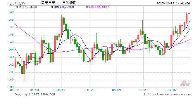 来源:新浪外汇 根据中国银行汇率牌价报价,截至14时36分,美元现汇买入价702.9700、现钞买入价702.9700、现汇卖 出价705.9300、现钞卖出价705.9300、中行折算价702.9700。 当前汇率价格为7个月新低,11个月新高。当前涨幅为7个月新低,7个月新高 文章来源:新浪外汇 新浪外汇消息2025年12月19日,截至14时40分,外汇市场上美元兑日元汇率突破1美元兑换156.3500日 元。涨幅为0.5208% 转换为人民币汇率,相当于100人民币兑换2218.8800日元;或者100日元兑换4.5100人民币。 ...