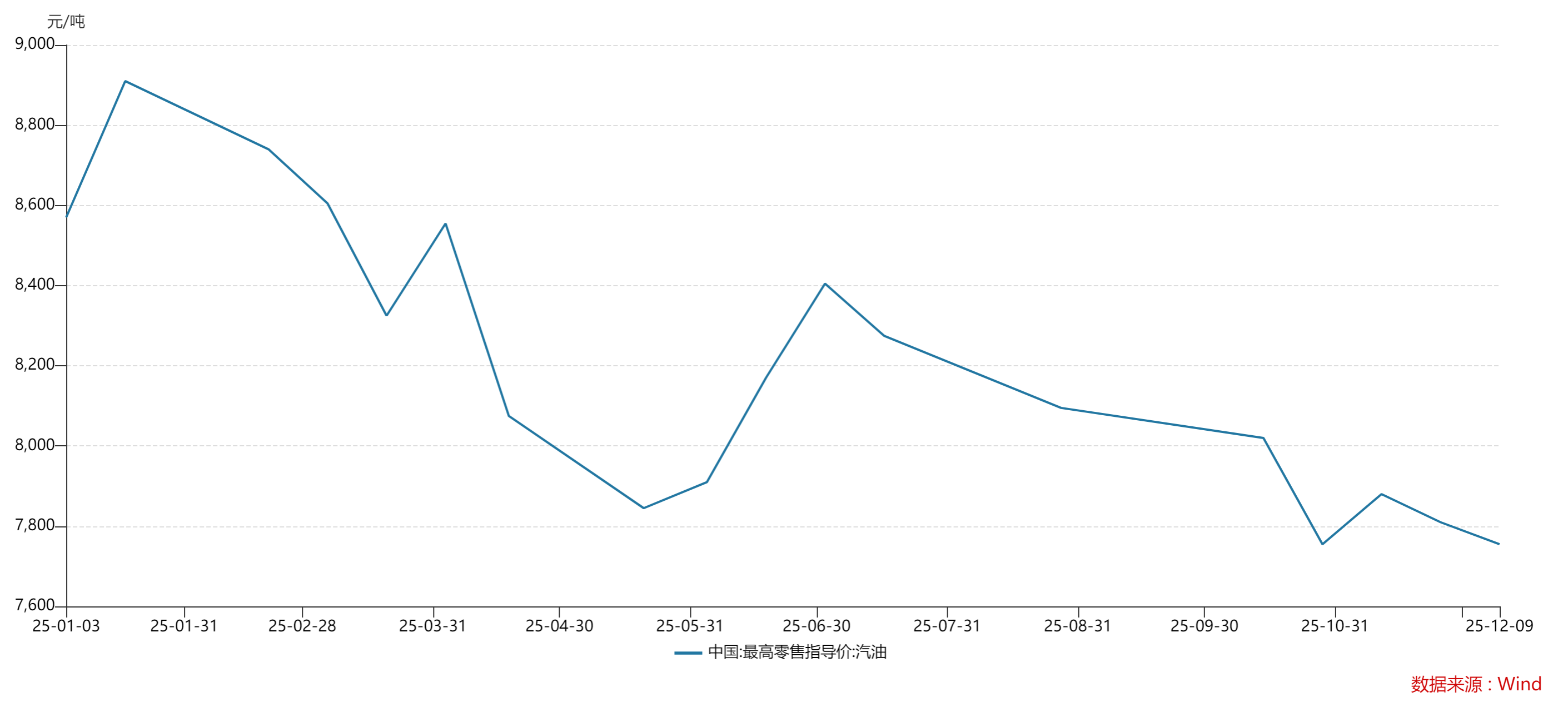 国内成品油价格调整预测 - 新一轮调价窗口将于12月8日24时开启 预计将迎来年内第十一次下调 汽、柴油零售限价每吨或均下调55元 [1] - 折合升价 92号汽油、95号汽油、0号柴油分别下调0.04元、0.05元、0.05元 [1] - 以油箱容量50升的小型私家车为例 加满一箱92号汽油将少花2元左右 [1][2] - 以月跑10000公里、百公里油耗38L的重型卡车为例 单辆车的燃油成本将减少89元左右 [2] 调价机制与近期市场背景 - 国内成品油调价依据是10个工作日国际原油价格加权平均价的变化率 变化率对应调价金额每吨不足50元时不作调整 [1] - 本计价周期(2025年11月24日至12月8日)内 欧洲局势扰动 美国石油累库 叠加感恩节假期市场交投清淡 原油价格整体窄幅波动 [1] - 计价周期内原油变化率持续在负值范围内运行 截至12月5日收盘 国内第10个工作日参考原油变化率为-1.24% [1] 2025年调价格局与当前油价水平 - 本次调价为2025年第二十四次调价 调价过后 2025年成品油调价将呈现“七涨十一跌六搁浅”的格局 [2] - 本次调价落实后 全国大多数地区车用柴油价格在6.4-6.6元/升 92号汽油零售限价在6.7-6.8元/升 [2] 下一轮调价展望与影响因素 - 下一次调价窗口将在2025年12月22日24时开启 以当前国际原油价格水平计算 下一轮成品油调价开局将呈现小幅上调趋势 [2] - 按照12月6日原油收盘价格测算 新周期的原油变化率正值开局 预计首日对应上调幅度在75元/吨 [3] - 展望后市 俄乌、美委等地缘局势不稳定 潜在供应风险担忧延续 OPEC+增产速度有放缓迹象 美联储大概率将在12月再次降息 预计下一轮成品油调价上调概率较大 [2] - 市场关注美联储后续降息节奏 美元趋势性走弱可能为原油价格带来长期提振 短期油价维持偏强运行行情 [3]