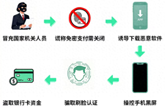 微信免密支付功能不收费! 冒充国家机关人员 谎称免密支付需关闭 诱导下载恶意软件 盗取银行卡资金 骗取刷脸认证 操控手机黑屏 安全提醒 1 微信支付"免密支付"功能本身不收取任何费用, 任何以"关闭免密支付"为由指导操作、索要收费或要 求下载软件的,都是诈骗。 2 切勿与陌生人开启"屏幕共享"或下载来源不明的 App,此类软件可能隐藏远程控制功能,导致手机被操 控、信息被窃取。 3 公检法及正规机构不会通过电话指导操作转账、下 载软件或索要人脸、密码、验证码等敏感信息。 4 如对支付功能有疑问,应通过微信、支付宝等官方 App内的客服渠道核实,勿轻信外来电话。 5 一旦发现被骗,立即冻结银行卡并报警,保留通话 记录、软件名称等证据。 自助查询与管理 来源: 微信安全中心 关注" 新华网财经 "视频号 更多财经资讯等你来看 往期推荐 茅台、五粮液同日官宣! 苹果闪送官宣iPhone免运费 ...