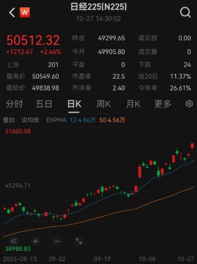 日本股市大涨创历史新高,日经225指数首次站上50000点|快讯