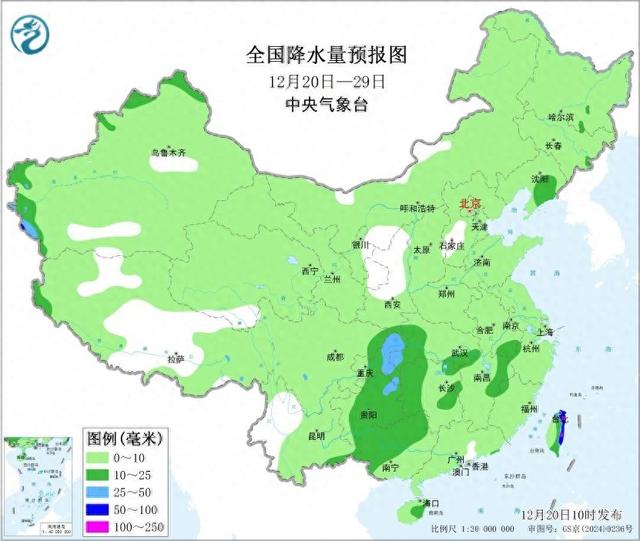 气温方面,除云南西部、内蒙古东北部、东北地区气温偏低外,全国其余大部地区平均气温较常年同期 偏高1~3℃,其中新疆北部、青藏高原等地部分地区气温偏高4℃以上。 来源:@中国气象局 转自:北京日报客户端 预计12月20到29日,新疆、甘肃、陕西、内蒙古、东北地区、山东、江汉、江南北部和西部、华南、西 南地区东部等地累计降水量有5~20毫米,其中新疆西南部、四川南部、重庆、贵州东部、台湾等地部 分地区有25~40毫米,局地超过50毫米。 东北地区、西南地区东部等地累计降水量较常年同期偏多4~8成,局地偏多1倍以上,我国其余大部地 区降水明显偏少。 ...