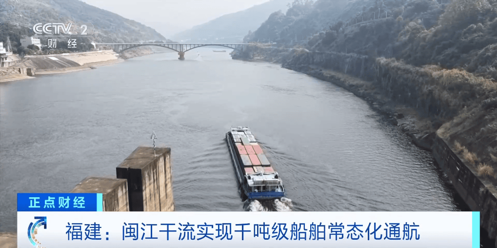 (央视财经《正点财经》)闽江是福建省最大的河流,昨天(12月18日),闽江航运发展有了新进展,闽江干流通航等级从500吨级提升到1000 吨级,将进一步助力闽江沿线经济发展。 转载请注明央视财经 编辑:潘煦 18日,满载54个标准集装箱的千吨级货船平稳驶出闽江水口船闸闸室,标志着闽江迎来千吨级船舶常态化通航。闽江航运连接福建北部的南平港 和位于省会的福州港,货物在福州港可转海运通达国内外。江海联运,不仅便捷,更能降低物流成本。如今,闽江已逐步形成"南竹北运""北粮 南运"等跨区域物流通道。截至今年10月底,经福州港中转的南平货物已达47.6万吨。 ...