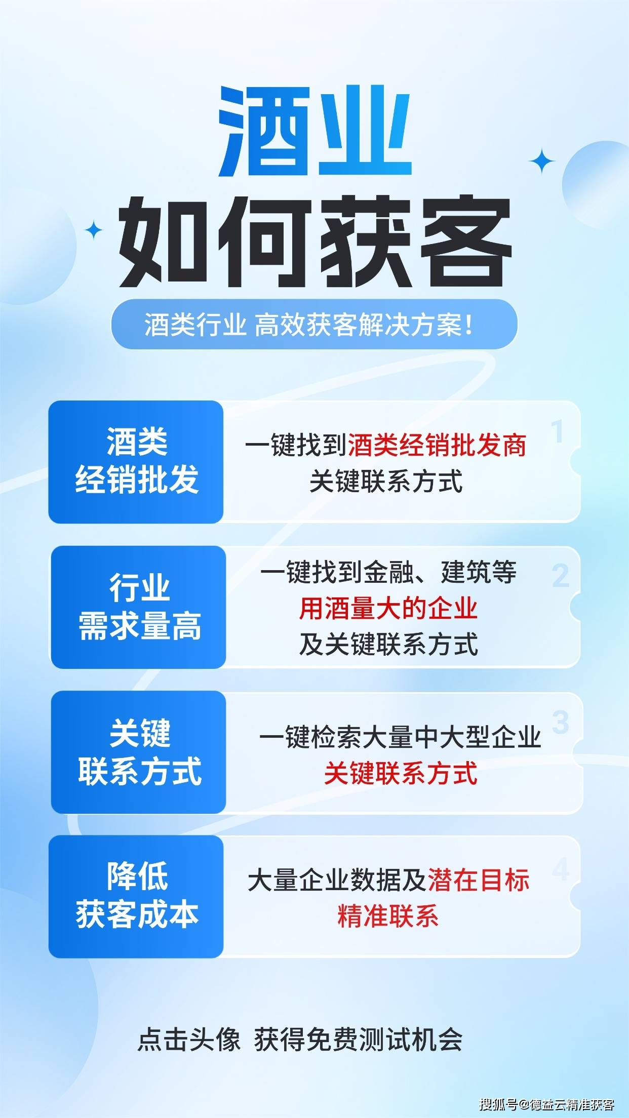 在酒类行业产能过剩与消费升级并行的2025年,传统"广撒网"式获客模式已难以满足企业需求。以贵州茅台、五粮液为代表的头部企业,通过数字化转型实 现年均30%以上的B端客户增长,揭示了精准获客的核心价值。 一、B端客户分层定位:构建三维需求模型 1. 经销渠道分层 2. 行业客户画像 1. 数据采集与清洗 德益云系统整合工商、司法、招投标、电商等2000+数据源,构建酒业专属数据中台。以某区域酒企为例,系统通过爬取当地政府采购网数据,识别出147 家近三年有酒水采购记录的企事业单位,数据准确率达91%。 2. 客户画像构建 采用多层神经网络算法,从企业规模、采购频次、品牌偏好等36个维度生成动态画像。某白酒品牌通过系统分析发现,年营收10-50亿元的制造业企业,对 300-500元价位段产品需求旺盛,据此调整产品策略后该价位段销量增长65%。 3. 智能触达与转化 4. 效果追踪与优化 系统自动记录每次触达的转化路径,生成ROI分析报告。某白酒经销商通过系统优化广告投放策略,将原本分散在5个平台的预算集中到3个高转化渠道,获 客成本降低42%。 头部经销商:聚焦年采购量超5000万元的超级经销商,需提供定制化供 ...