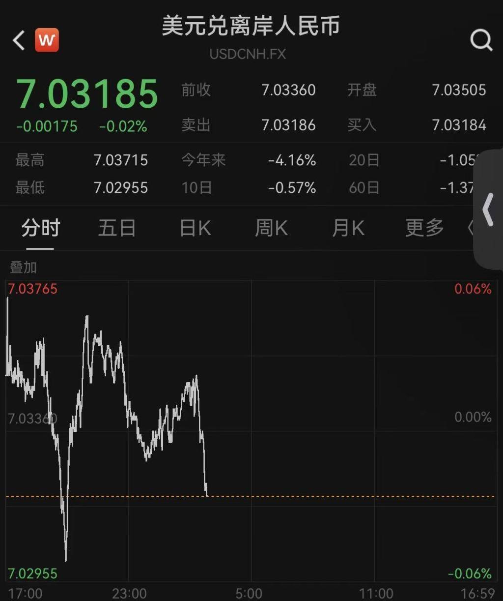 离岸、在岸人民币对美元汇率分别升破7.03、7.04