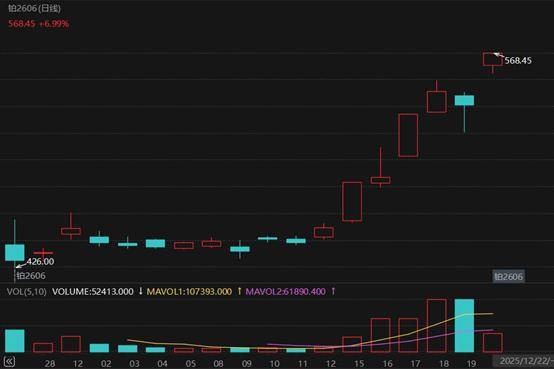 转自:中国经营网 中经记者 郝亚娟 夏欣 上海 北京报道 12月16日,现货铂金XPT最高触及1834.94美元/盎司,年内涨幅超过90%。 沈学昂强调,在供给缺口延续、流动性宽松以及氢能叙事推进的背景下,铂金中长期仍有上涨空间。短 期内则可能受其他贵金属情绪外溢影响,波动加大。他还特别提到,国内铂金期货价格已较外盘出现一 定溢价,随着国内铂钯期货市场发展,国内定价话语权有望提升。 南华期货方面指出,从中长期看,铂金的牛市基础仍在,短期看国内期货市场资金集中涌入导致铂金国 内外价差走扩,短期需警惕调整风险。展望2026年,预计美联储在2026年上半年继续采取宽松货币政策 的政策基调不变,投资需求仍有望上升;另一方面,预计2026年铂金仍将保持供需面偏紧的格局。 12月16日,国内铂金大盘价站上400元/克。 谈到铂金价格大涨的原因,中信期货研究所有色与新材料组高级研究员王雨欣分析表示,主要受两方面 因素推动:一是市场对美联储独立性减弱与降息空间扩大的预期增强,二是现货市场供需再度收紧。她 指出,随着美联储主席提名临近,市场开始交易"美联储独立性风险",潜在候选人政策倾向偏鸽,叠加 即将公布的非农数据可能偏弱, ...