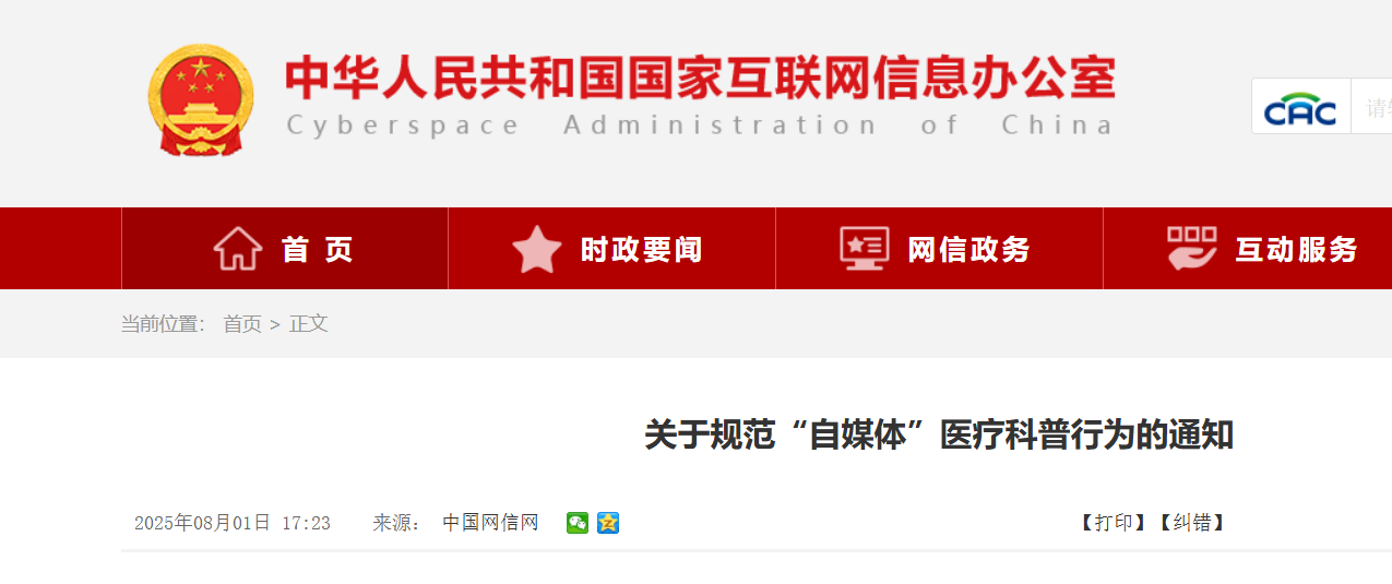 中央网信办等四部门:规范“自媒体”医疗科普行为