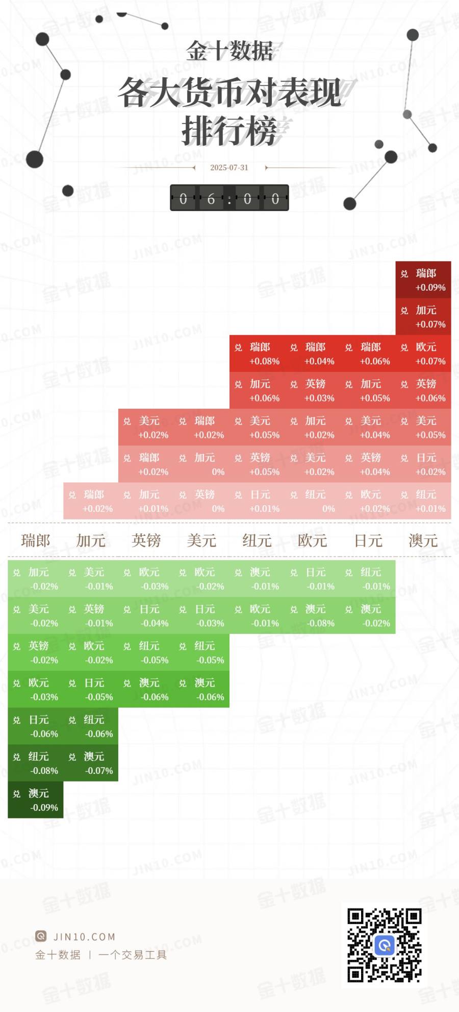2025年07月25日(周五)各大货币对表现 - 兑美元汇率下跌0.04% [3] - 兑纽元汇率下跌0.04% [3] - 兑欧元汇率下跌0.06% [3] - 兑澳元汇率下跌0.06% [3] - 兑纽元汇率下跌0.08% [3] - 兑纽元汇率下跌0.09% [3]