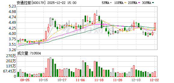 10月25日公司发布的三季报数据显示,前三季度公司共实现营业收入65.37亿元,同比增长22.65%,实 现净利润6.64亿元,同比增长311.77%。(数据宝) 安通控股(600179)今日涨停,全天换手率1.84%,成交额3.15亿元,振幅8.23%。龙虎榜数据显示,机构 净卖出382.45万元,沪股通净卖出587.79万元,营业部席位合计净买入1.11亿元。 上交所公开信息显示,当日该股因日涨幅偏离值达9.41%上榜,机构专用席位净卖出382.45万元,沪股 通净卖出587.79万元。 证券时报·数据宝统计显示,上榜的前五大买卖营业部合计成交1.45亿元,其中,买入成交额为1.23亿 元,卖出成交额为2230.25万元,合计净买入1.01亿元。 具体来看,今日上榜的营业部中,共有1家机构专用席位现身,即卖四,合计净卖出382.45万元,沪股 通为第一大卖出营业部,卖出金额为587.79万元,合计净卖出587.79万元。 资金流向方面,今日该股主力资金净流入1.26亿元,其中,特大单净流入1.50亿元,大单资金净流出 2406.29万元。近5日主力资金净流入6818.67万元。 融资融券数据显示,该股最新 ...