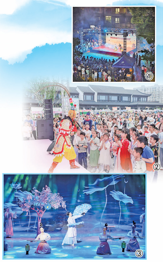 图①:艺术团在杭州拱墅区的一个居民区演出。 图②:艺术团在舟山新城茶山浦水街演出。 图③:艺术团演员在"梦启钱江"主题晚会上演出。 以上图片均为"钱江浪花"艺术团提供 核心阅读 从村里几年也没一次专业演出,到在家门口就能看丰富多彩的节目,20年来,浙江"钱江浪花"艺术团坚 持送戏下乡,不断创新展演形式、充实演出队伍,用艺术浸润乡土,把优质文化资源送到基层。让我们 在"浪花"奔涌中聆听文化与乡村双向奔赴的回声。 "千年不听锣鼓响,万年才见戏开场。"谈起20余年前的浙江农村,今年72岁、曾任"钱江浪花"艺术团 (以下简称"艺术团")总经理的陆湘汉,脱口而出一句顺口溜。"那时,从文化设施到人才,农村都很 缺乏,专业团体演出几年也没一回。"陆湘汉说。 2005年6月,浙江召开全省宣传文化系统调研座谈会。当年,艺术团正式成立。田间、校园、海岛…… 20年来,艺术团走过了浙江省11个地市、90个县(市、区)、1000多个乡镇(街道),演出超5000场, 惠及观众超1000万人次。 老百姓的喜爱,是"浪花"的不竭动力 除了武戏《美猴王》,快板《奋进新时代》、独唱《在希望的田野上》、杂技《顶花坛》等接连上 演。"精彩演出从电 ...