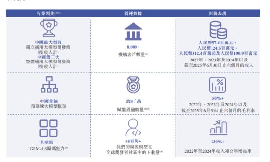 在AGI(通用人工智能)的全球竞赛中,中国大模型独角兽企业的资本化进程终于迈出了实质性的一 步。 12月19日晚间,北京智谱华章科技股份有限公司(简称智谱)披露招股书(申请版本,下同),宣布赴 港冲刺"全球大模型第一股"。 这家成立于2019年的公司,由清华大学技术成果转化而来。招股书显示,智谱的营收在过去三年实现年 均复合增长率超过130%。不过,在营收高歌猛进的同时,作为一家典型技术驱动型企业的智谱也面临 着巨额研发投入带来的亏损挑战。 MaaS支撑下收入高速增长,毛利率高达50% 从财务数据看,近几年,智谱的收入增长呈现出明显的加速态势。 2022年至2024年,智谱收入分别为5740万元、1.25亿元和3.12亿元,年均复合增长率超130%。收入增速 在2025年上半年进一步放大,2025年上半年,智谱实现营收1.91亿元,较2024年同期的4490万元同比增 长325.39%。 毛利率层面,2022年至2024年,智谱的毛利率分别是54.6%、64.6%、56.3%,2025年上半年毛利率为 50.0%。 收入的扩张,与其商业模式高度相关。 招股书显示,智谱的商业模式以模型即服务(MaaS)平台为核 ...