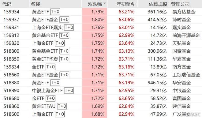 现货黄金再度刷新历史高点,黄金ETF、上海金ETF上涨,年内涨幅超62%