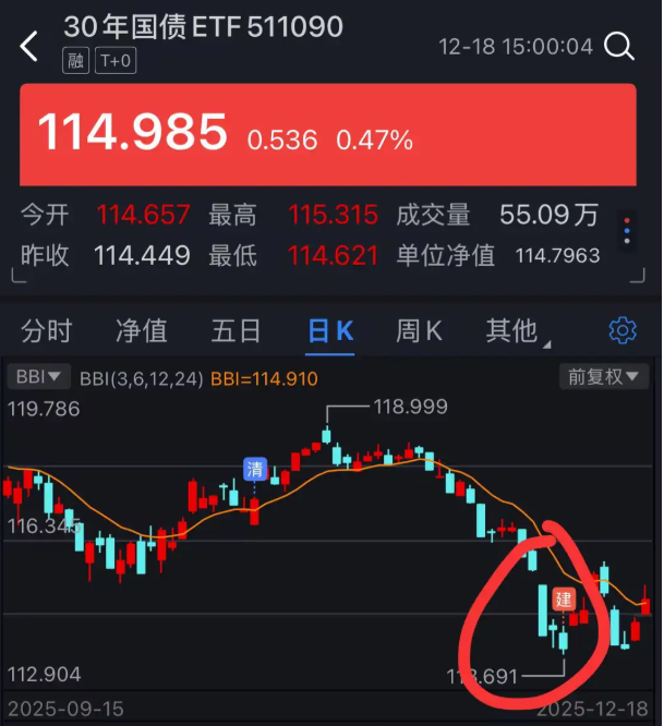 那么,超长期国债是什么? 简单来说,就是到期年限在20年及以上的国债,这类国债主要由保险、养老金等长期资金进行配置。普通投资者较为常见的参与方式,是场内的30年期国债 ETF(511090)。 为什么很多普通者会选择30年国债ETF?主要因为它的弹性大。期限越长,国债价格对利率变化越敏感。当利率处于趋势性下行阶段时,这种高久期特征往 往能够被充分放大。 2024年就是典型的例子。这一年,30年期国债ETF(511090)收涨了23.21%,收益率相当可观。 今年债市整体的性价比很低,超长期国债尤为明显。即便做波段,胜算也相对有限。近期超长债持续走弱,价格不断回调。即便是今年不看好国债的我,也 开始关注其中出现的一些阶段性机会。 进入今年年初,超长债虽然延续了约两个月的债牛行情,但随后逐步进入回调通道,近期跌幅尤为明显。 从11月初至12月8日,30年期国债ETF(511090)累计下跌约4%。价格下跌的另一面是,利率几乎单边抬升,30年期国债到期收益率从2.136%持续上行至 2.265%。 (图表来源:中国银河证券) 出品 | 妙投APP 作者 | 丁萍 编辑 | 关雪菁 头图 | AI生图 (图表来源:东 ...