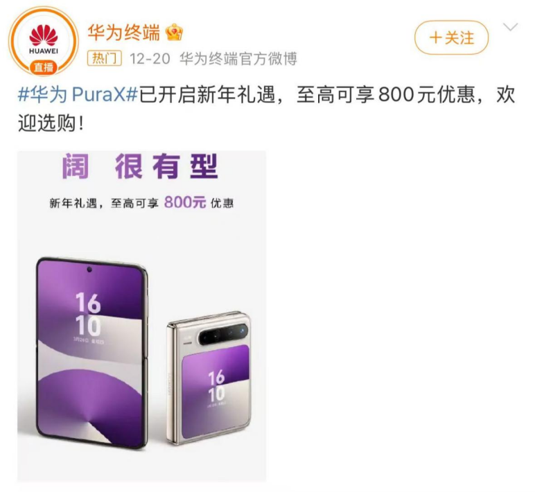 华为阔折叠手机Pura X官方降价,最高降800元|实探