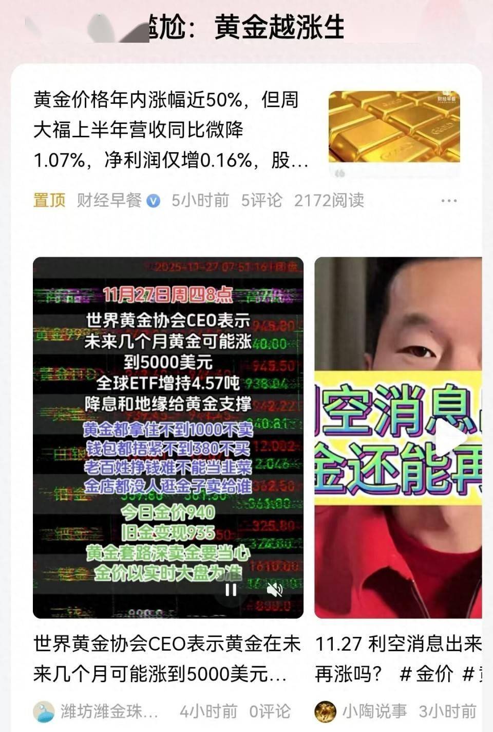 2025年上涨最快的商品是什么?估计大家都会不约而同的说,那就是黄金!国际黄金价格从年初的每克640元,一路涨到了最高点每克 990元,现在还是每克942元,而黄金饰品的价格涨幅更为惊人,现在品牌的连锁金店每克都达到了每克1316元。但是奇怪的是,随着 周 大福、 老凤祥等知名品牌上市公司的报表出炉,民众发现,他们收入在减少,利润减少的更为惊人,这是为什么? 刚刚出炉的周大福的财务报表显示,上半年公司营业额为389.86亿港元,还同比减少1.1%。经营利润仅为68.23亿港元,同比才增长 0.7%;归属到股东的利润仅仅为25.34亿港元,仅较去年同期增长0.1%,毛利率还减少了0.9个百分点。 这已经算是非常不错的,国内知名金饰品牌老凤祥,在前三季度实现营业收入480.01亿元,同比下降8.71%;归属于上市公司股东的净利 润14.38亿元,同比下降19.05%。同样看到黄金板块的其他上市公司,包括 周大生等等,无一例外的收入在减少,利润率在缩减。 确实,黄金销售就是一直在萎缩之中,黄金价格的上涨带来的不是销量增加,而是消费者越来越买不起了,越来越持观望态度了。数据 显示,2025年上半年,我国黄金首饰消费量 ...
