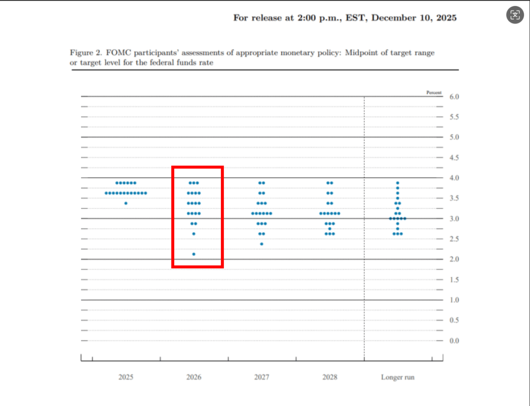 一切都在预料当中,美联储2025年最后一次降息落锤了,如市场预期一致降息25个基点。 意料之外的是美联储每月从12日开始30天内购买400亿美元国库券,以维持充足的准备金供应。 早上就有用户问我美联储每月购债400亿美元,是什么意思?其实这次的购债不是QE,只是为了缓解短期融资成本。 美联储用"发糖"的方式安抚市场,主要意图还是表达美国经济具有一定韧性而已,并非启动大规购债刺激市场,不必过度解读。 美联储点阵图显示,在19位官员中,有7位官员认为2026年不应降息,有4位官员认为应累计降息25个基点,有4位官员认为应累计降息50个基点,有2位官 员认为应累计降息75个基点,有1位官员认为应累计降息100个基点,有1位官员认为应累计降息150个基点。 从点阵图来看,2026年美联储降息态度分岐较大,内部矛盾重重,再加上美联储主席鲍威尔2026年5月卸任,新主席上任后的态度显的格外重要。 整体而言,美联储依旧处于降息大周期,贸易冲突和就业情况引发的通胀担忧阻碍美联储官员的态度,此次降息落地后黄金市场表面并不强烈,依旧延续 反复震荡行情。 说一下今天黄金行情: 之前,我几次提及影响黄金接下来牛市延续的根本在于新主席 ...