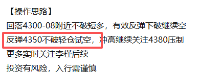 【汇金趋势掌乾坤,每日思路见真章】 此前预测22日黄金发生转折,行情精准兑现! 本周如下,提前公开预测本周转折,所以一直围绕反弹空布局,收获不错。全部真是可溯,李槿从不弄虚作假! 【操作思路】 黄金周线九连阳后,上行动能衰减,最终以大阴收尾。从技术面分析,周线九连阳后,价格处于相对高位,超买信号明显,本身具备回调需求。周五CPI数 据利多,行情短暂拉升后尾盘还是出现回落。黄金长期上涨趋势不改,但过程注定曲折,短期内难以实现单边上涨行情,个人认为盲目追涨的风险远大于收 益。 下周还有数据,影响不大的话还是在4000-4400大区间震荡洗盘的,未破位前高空低多即可。黄金短期内可能继续在一定区间内震荡,短期关注4060-4250小 区间。周一先关注4100附近多空分水,接近不破短多,继续维持震荡接近4080附近,也是不错多的位置。上方阻力依旧关注4160压制,站稳继续看向4186附 近。 行情波动大,小周期的跨度大,同时小周期的变数还大!操作难度也随之加大,几分钟波动几十个点都是轻而易举的。建议大家做好仓管,拿不准主意的时 候观望或许也是不错的操作手法。 反弹4160附近轻仓空,行情震荡见4186不破空 回落410 ...